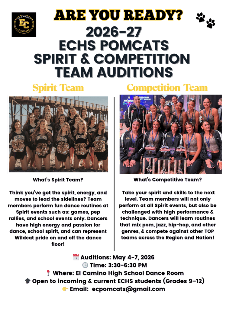 The POMcats are a Nationally ranked Varsity dance team. An elite group of highly trained competitive dancers that represent El Camino High School.